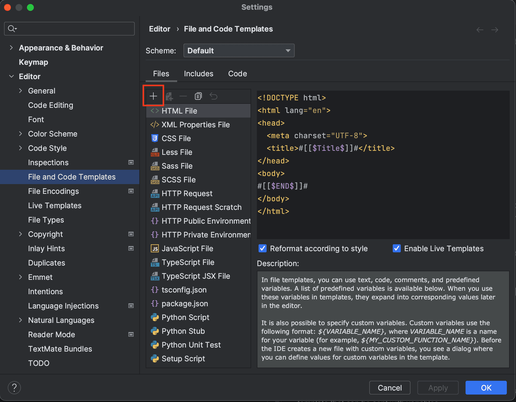 That is quite simple. Open settings or preferences (⌘ Comma on Mac), and head to Editor | File and Code Templates..