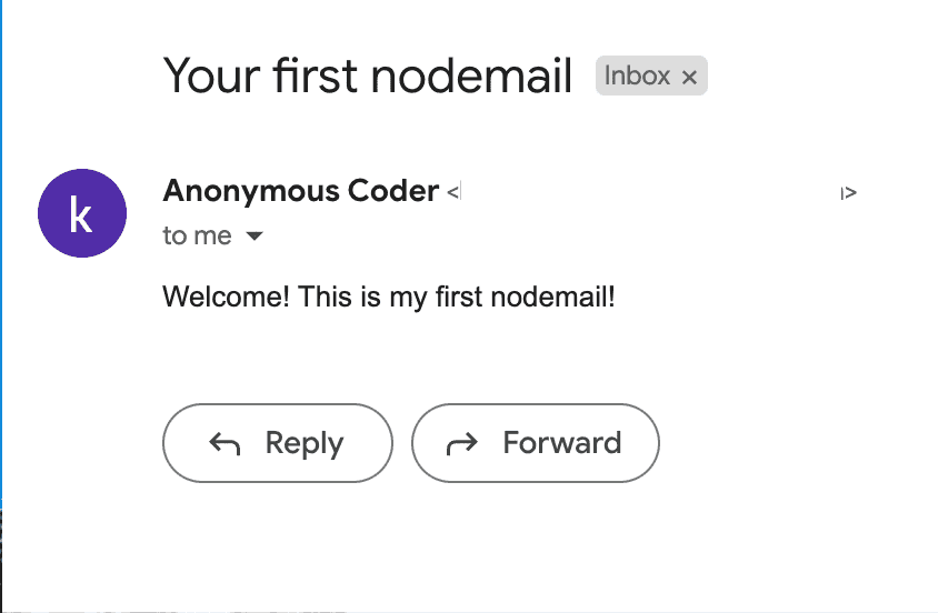 html: `<div>Welcome! This is my first nodemail!</div>`
